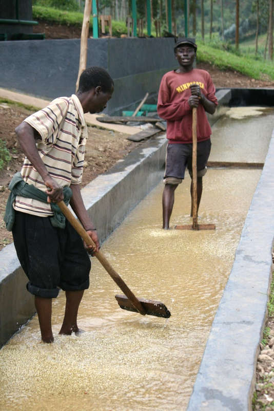 Once picked, coffee is rushed to the local washing station for processing. Traditional processing in Burundi involves pulping the coffee and "dry fermenting" it up to twelve hours, at which point it gets washed in clean mountain water for another 12-24 hours. The beans are then soaked for an additional 12-18 hours before being dried in parchment on raised beds. Coffee growing is extremely important to families there as well as to the country at large.