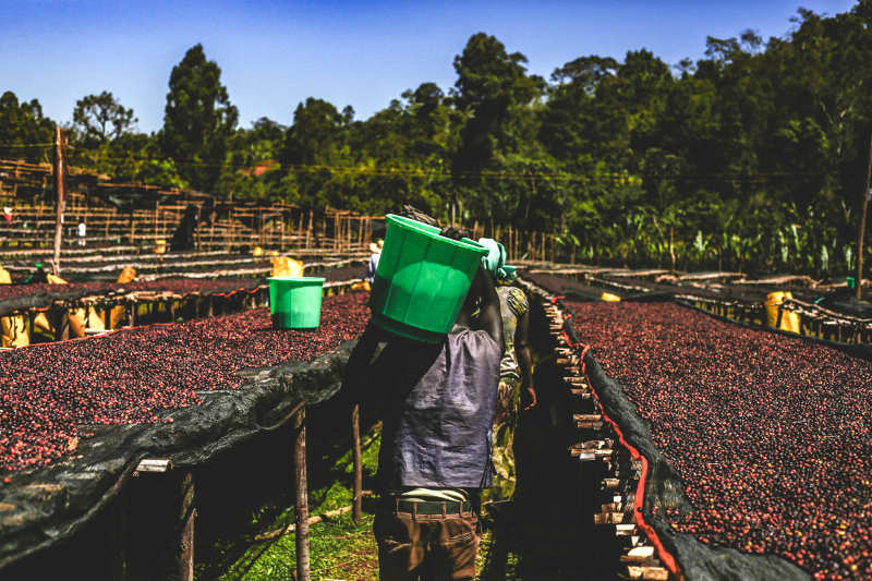 This Natural lot was immediately placed to dry on raised beds that are 25 meters long. Depending on the weather, the drying process might take from 16-25 days, with cherries constantly being moved around on the beds.